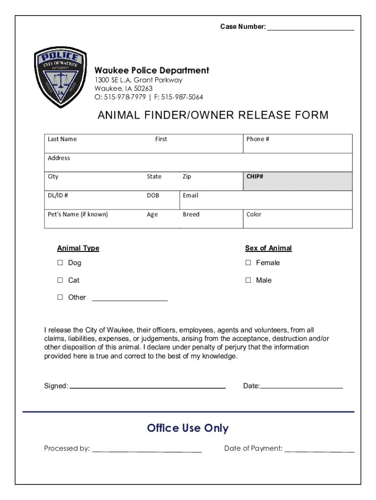 Fill out your animal finderowner release form online with pdfFiller!