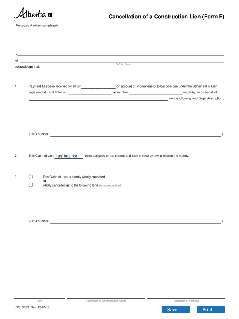 The cancellation of construction lien must be filled out with the appropriate information and submitted to the relevant authorities.