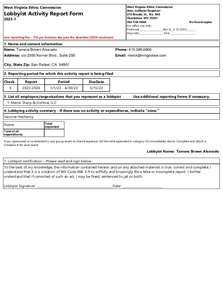 Get the free Name: Tamera Brown Alvarado - ethics wv