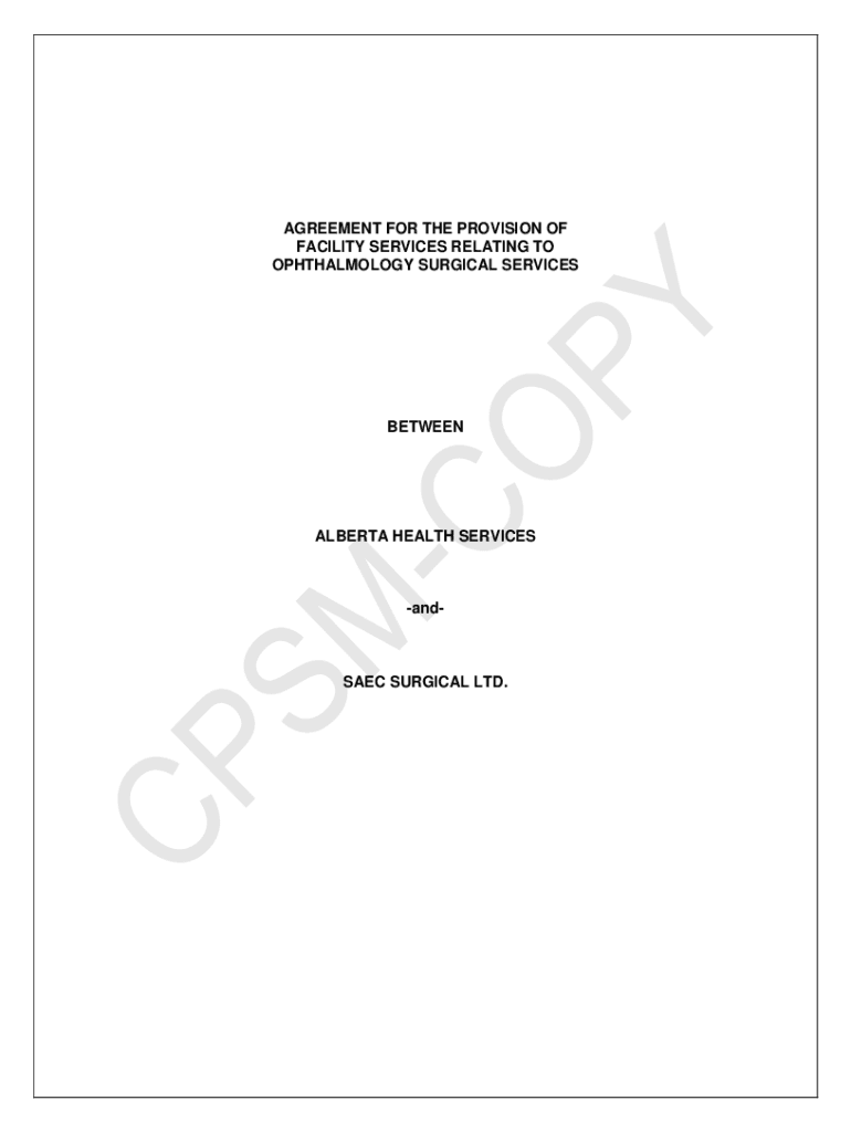 AGREEMENT FOR THE PROVISION OF FACILITY SERVICES RELATING TO OPHTHALMOLOGY SURGICAL SERVICESBETWEENALBERTA HEALTH SERVICESandSAEC SURGICAL LTD.2 TABLE OF CONTENTS 1.0INTERPRETATION ..........................................................................................................................