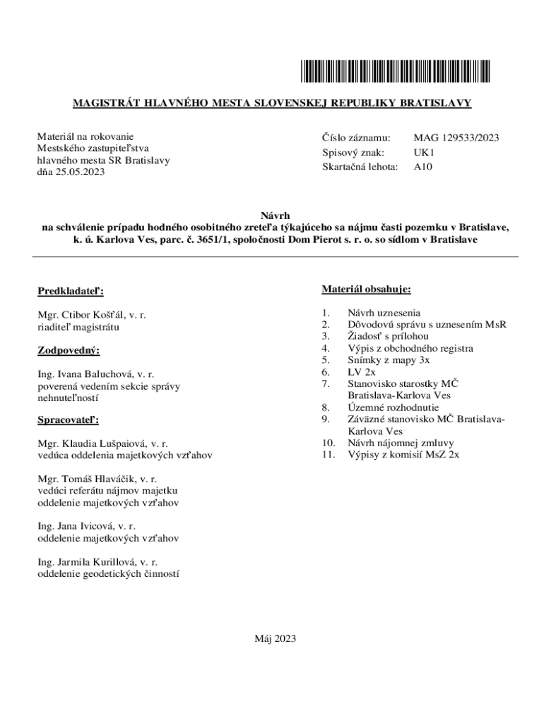 Get the free na schvlenie prpadu hodnho osobitnho zretea tkajceho sa njmu asti pozemku v Bratislave,