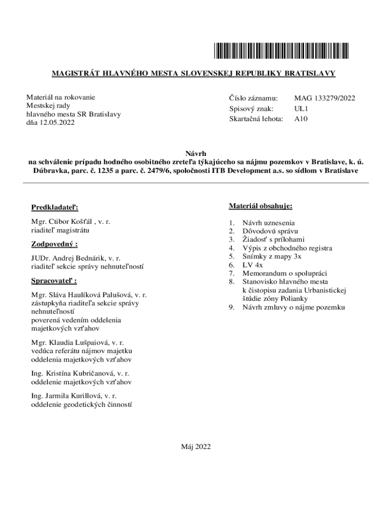 Get the free na schvlenie prpadu hodnho osobitnho zretea tkajceho sa njmu pozemkov v Bratislave, k
