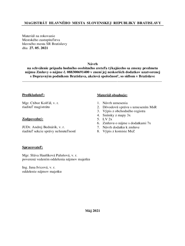 Get the free na schvlenie prpadu hodnho osobitnho zretea tkajceho sa zmeny predmetu