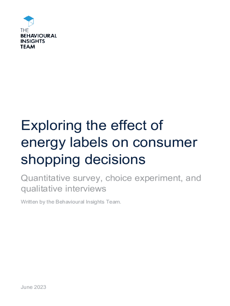 Exploring the effect of energy labels on consumer shopping decisions Quantitative survey, choice experiment, and qualitative interviews Written by the Behavioral Insights Team. June 2023Authors In