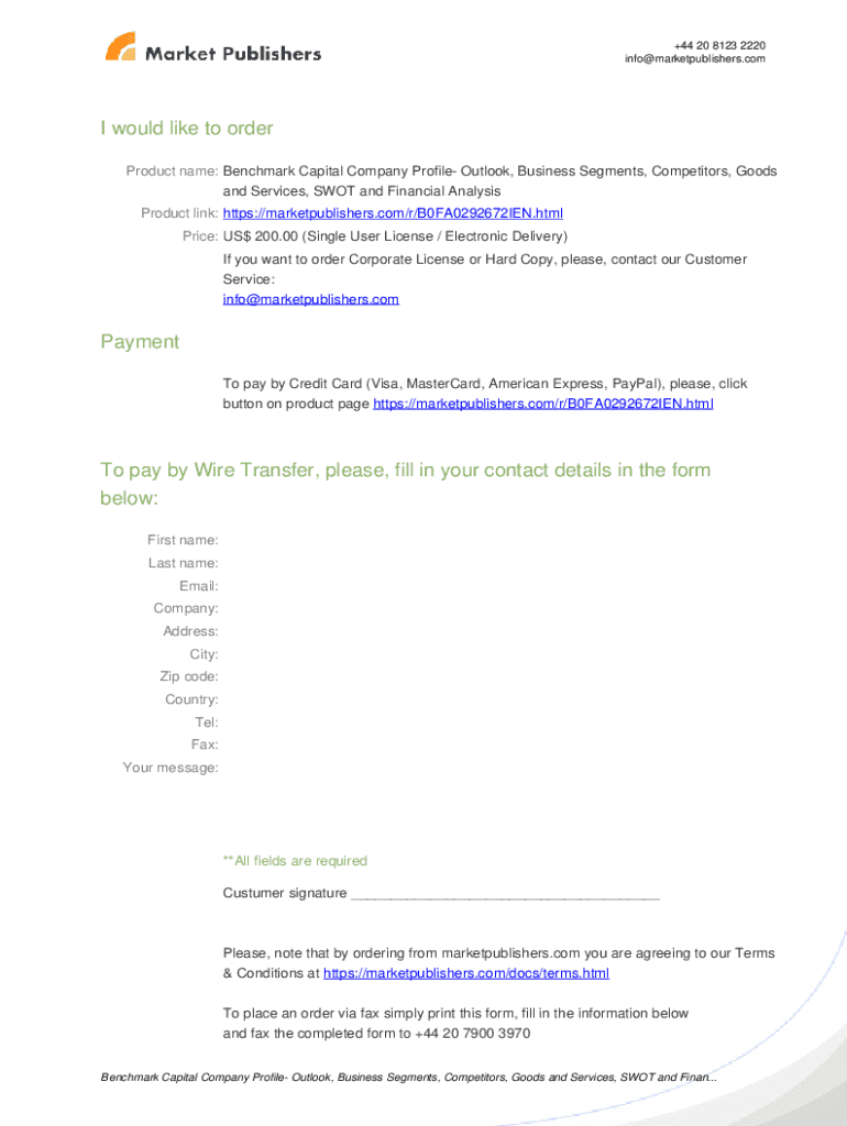 Fill out your benchmark capital company profile online with pdfFiller!
