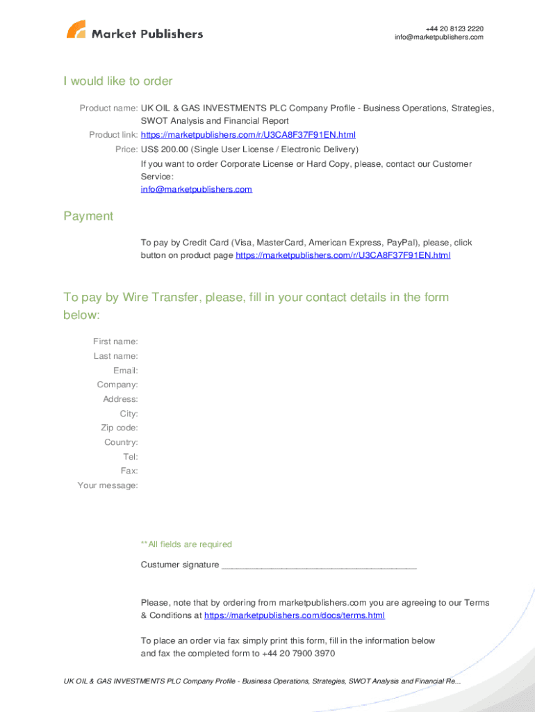 +44 20 8123 2220 info@marketpublishers.comUK OIL & GAS INVESTMENTS PLC Company Profile Business Operations, Strategies, SWOT Analysis and Financial Report https://marketpublishers.com/r/U3CA8F37F91EN.html