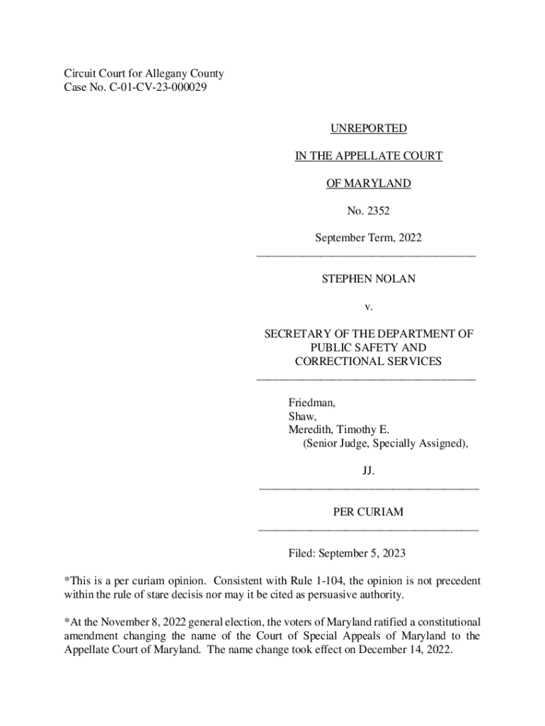 Circuit Court for Alleging County Case No. C01CV23000029UNREPORTED IN THE APPELLATE COURT OF MARYLAND No. 2352 September Term, 2022 ___ STEPHEN NOLAN v. SECRETARY OF THE DEPARTMENT OF PUBLIC SAFETY