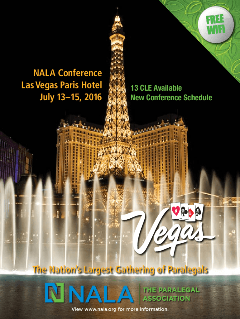 FREE FINAL Conference Las Vegas Paris Hotel July 1315, 201613 CLE Available New Conference Scheduled Nations Largest Gathering of ParalegalsView www.nala.org for more information. I NV ITE F R O M