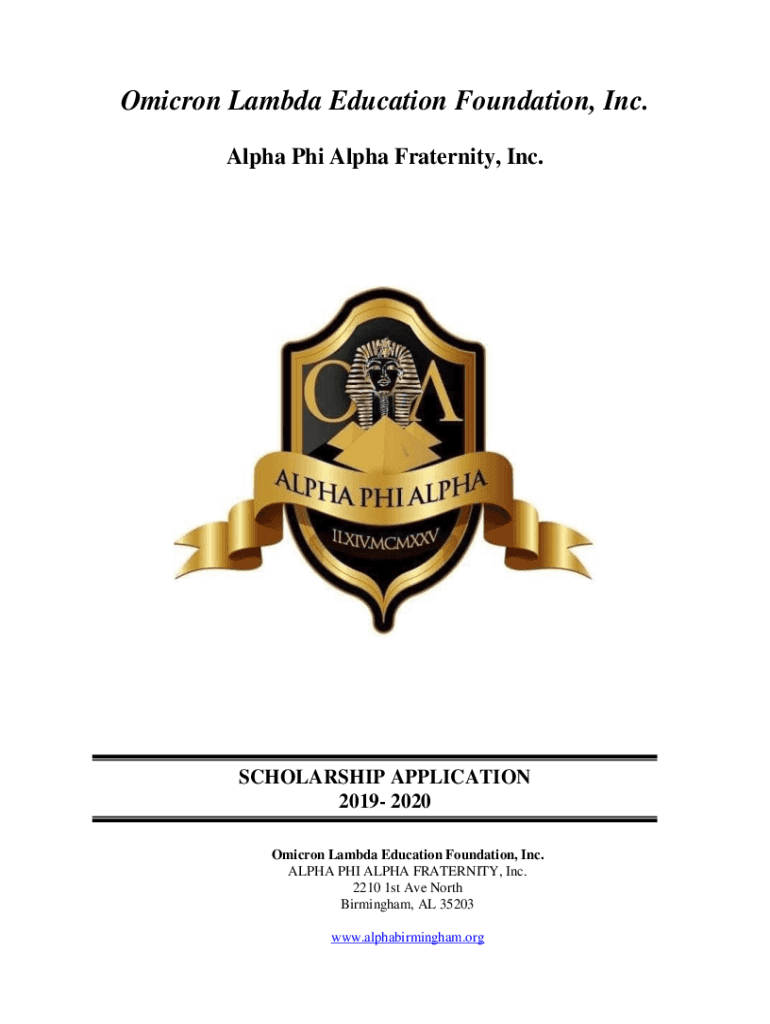 Omicron Lambda Education Foundation, Inc. Alpha Phi Alpha Fraternity, Inc. SCHOLARSHIP APPLICATION 2019 2020 Omicron Lambda Education Foundation, Inc. ALPHA PHI ALPHA FRATERNITY, Inc. 2210 1st Ave