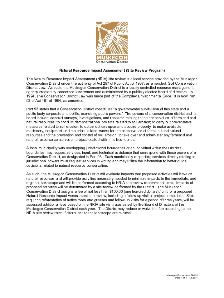 Natural Resource Impact Assessment (Site Review Program) The Natural Resource Impact Assessment (ARIA) site review is a local service provided by the Muskegon Conservation District under the authority