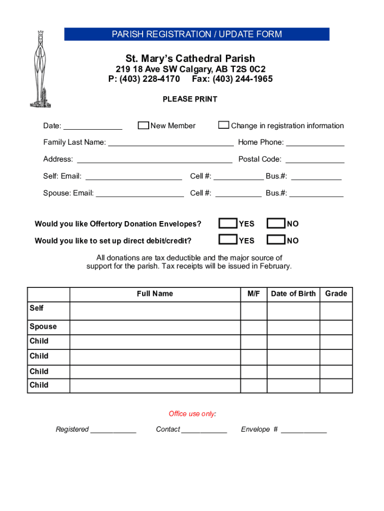 PARISH REGISTRATION / UPDATE Format. Mary's Cathedral Parish219 18 Ave SW Calgary, AB T2S 0C2