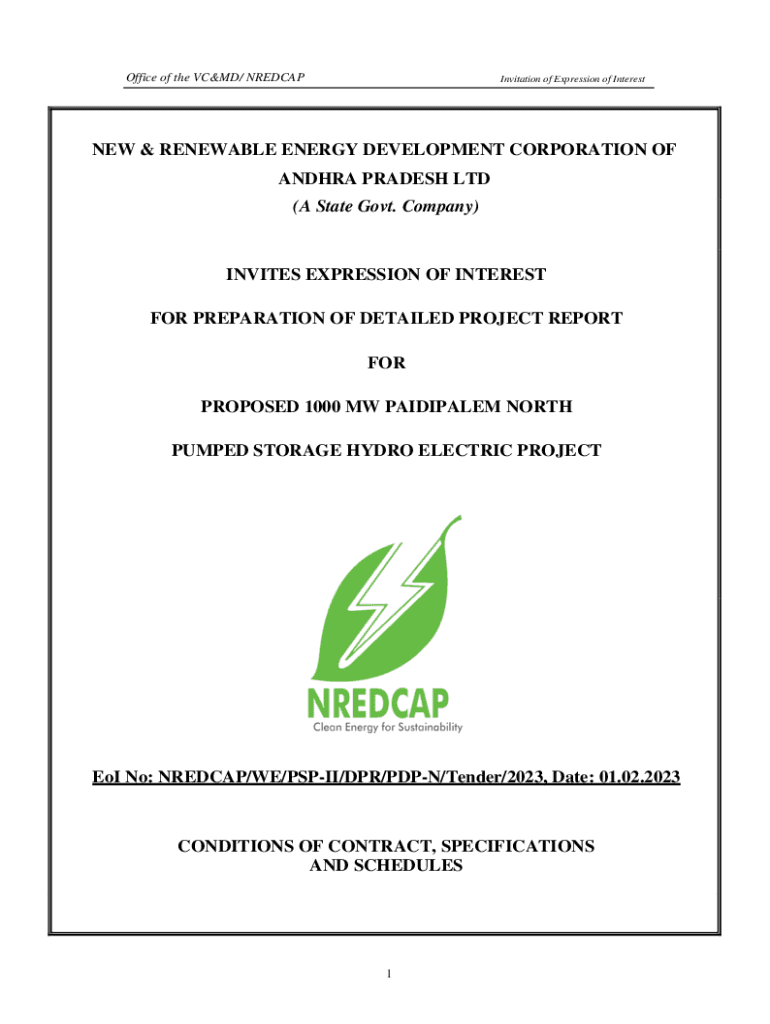 Office of the CMD/ NREDCAPInvitation of Expression of Interested & RENEWABLE ENERGY DEVELOPMENT CORPORATION OF ANDHRA PRADESH LTD (A State Govt. Company)INVITES EXPRESSION OF INTEREST FOR PREPARATION