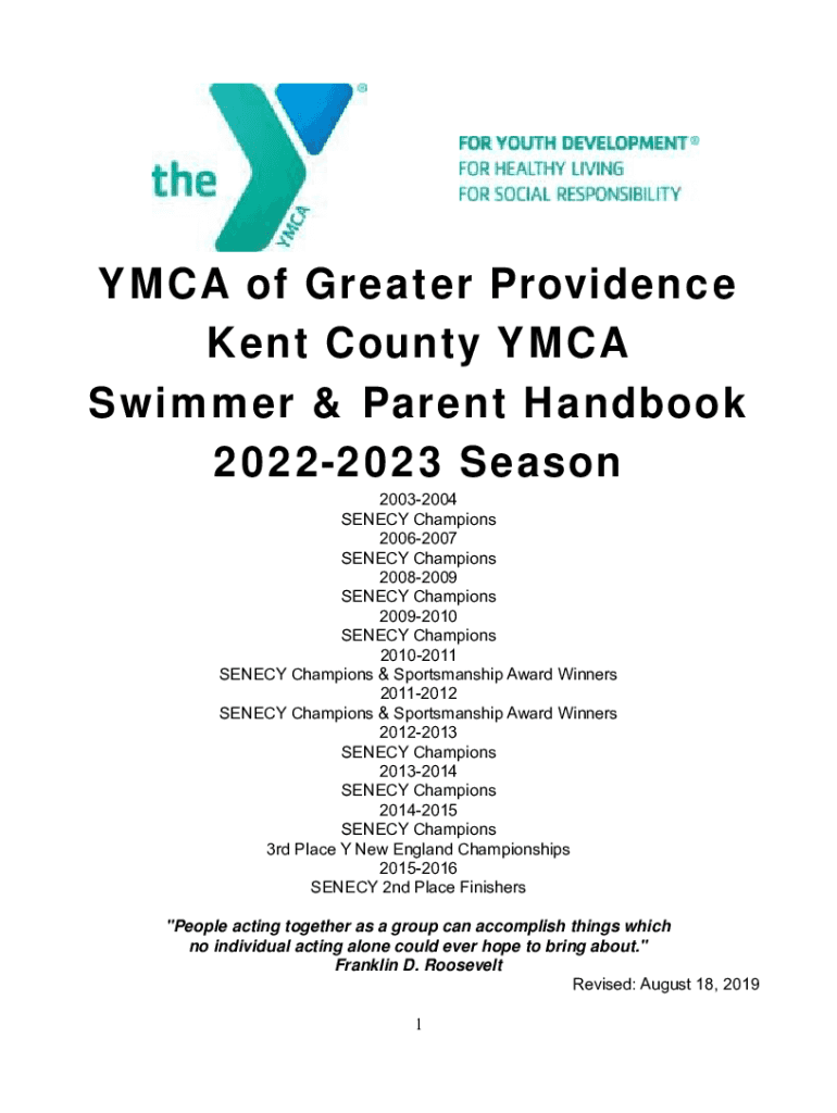 Y MCA of Great her Providence Kent County Y MCA Swim m her & Parent Handbook 2 0 2 22 0 2 3 Season 20032004 SENECA Champions 20062007 SENECA Champions 20082009 SENECA Champions 20092010 SENECA Champions