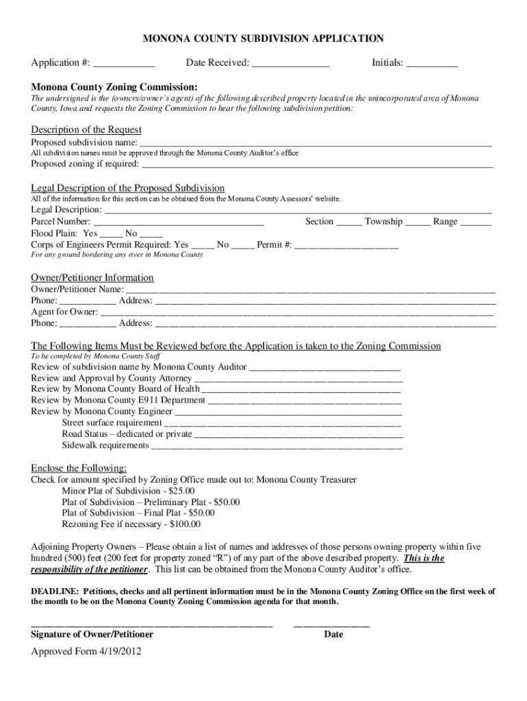 Obtain the necessary forms from the City of Monona website or visit the city offices in person.