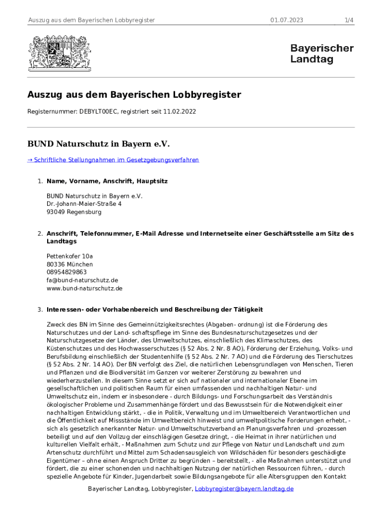 Using AUS them Bayerischen Lobbyregister01.07.20231/4Auszug AUS them Bayerischen Lobby register