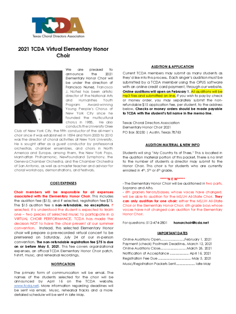 Get the free 2022 Elementary Honor Choir Registration Form
