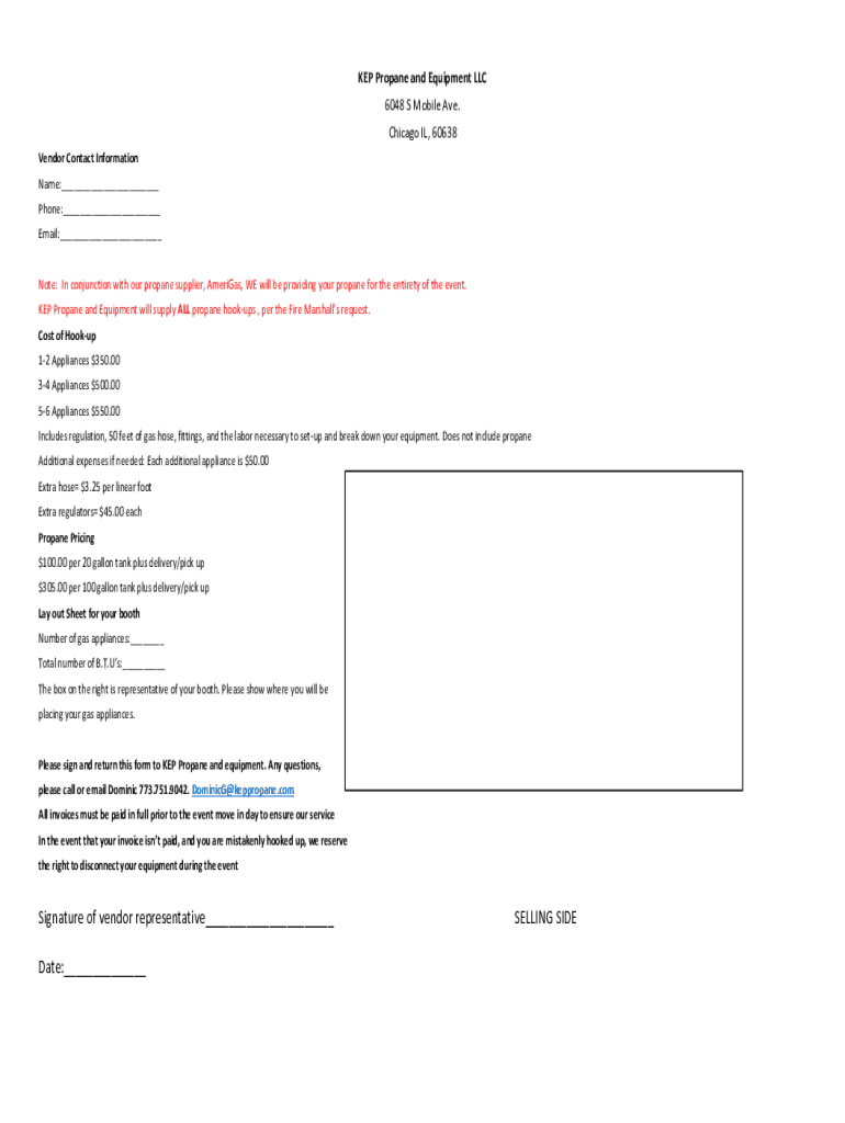 KEEP Propane and Equipment LLC 6048 S Mobile Ave. Chicago IL, 60638 Vendor Contact Information Name:___ Phone:___ Email:___ Note: In conjunction with our propane supplier, Americas, WE will be providing