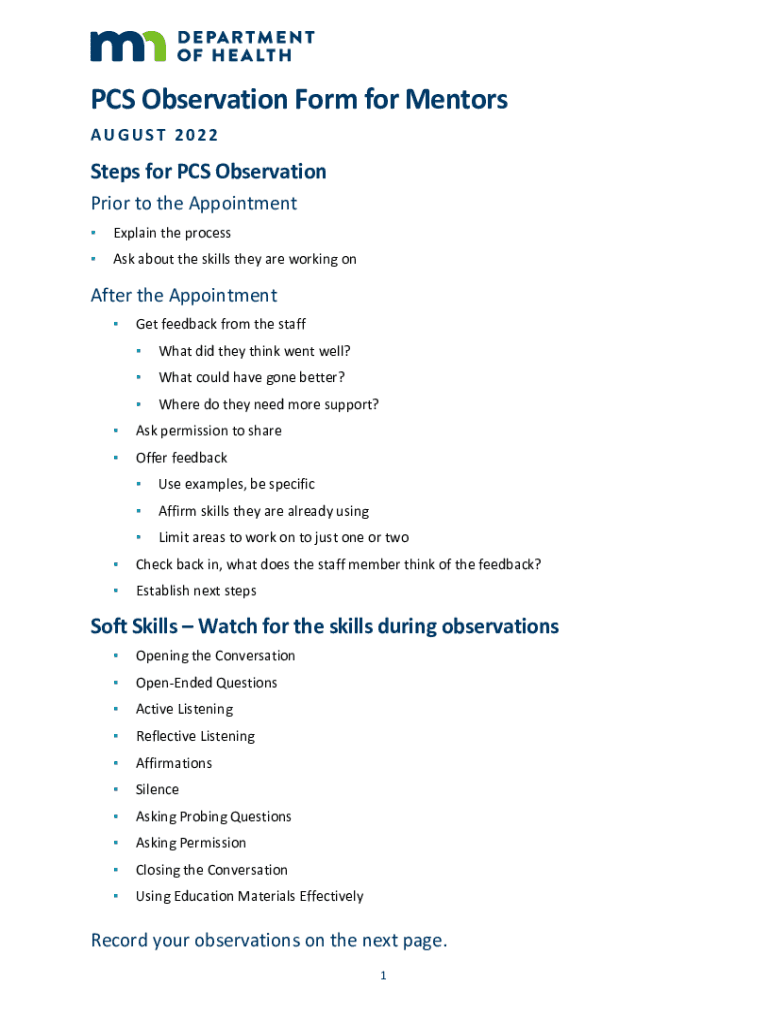 Get the free PCS Observation form for Mentors. PCS Observation form for Mentors