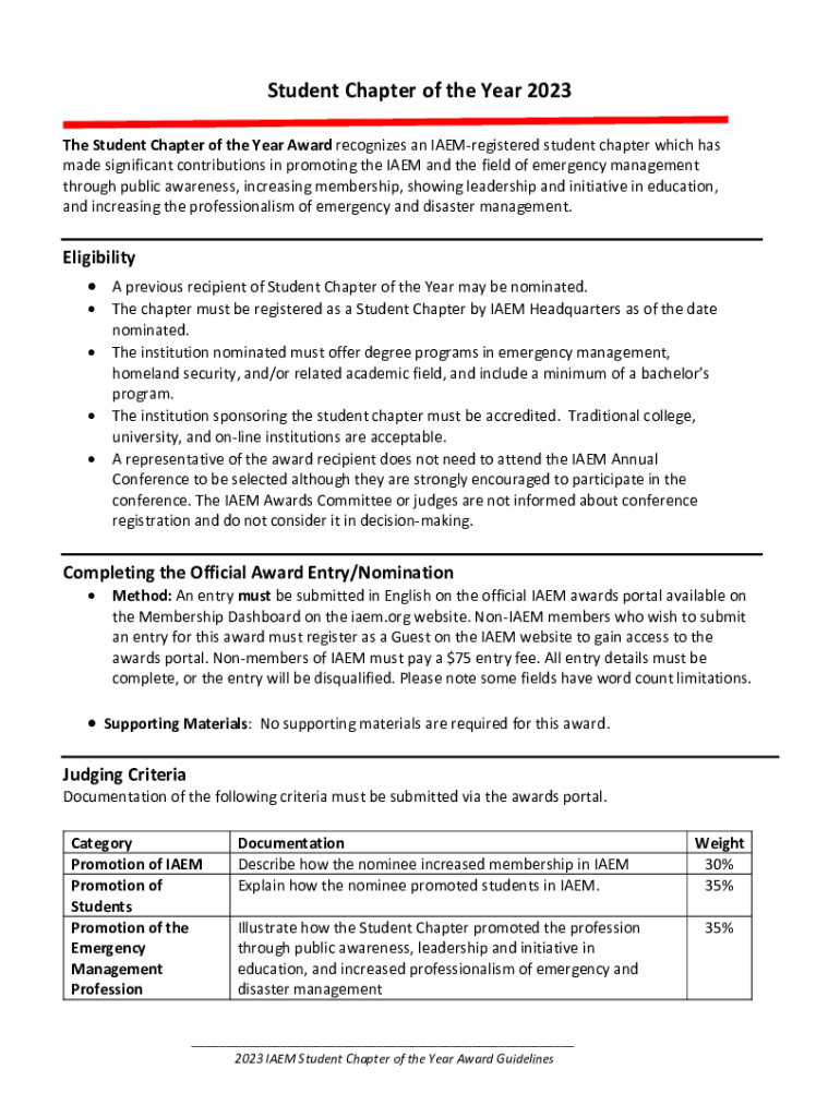 Get the free IAEM-USA Announces Student Chapter of the Year. ...