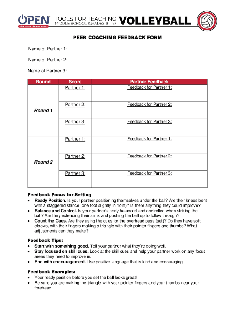 To fill out the peer coaching feedback form, participants should provide honest feedback on the coaching sessions and areas for improvement.