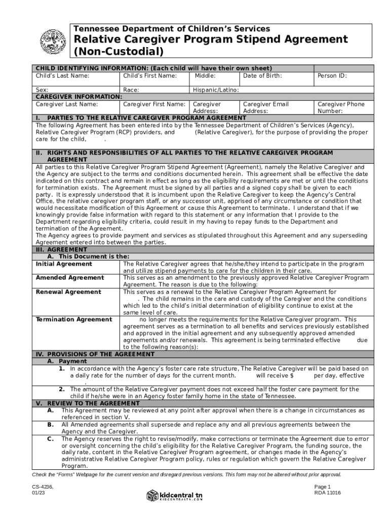 What is Relative Caregiver Program Stipend Agreement (Non-Custodial) Form?