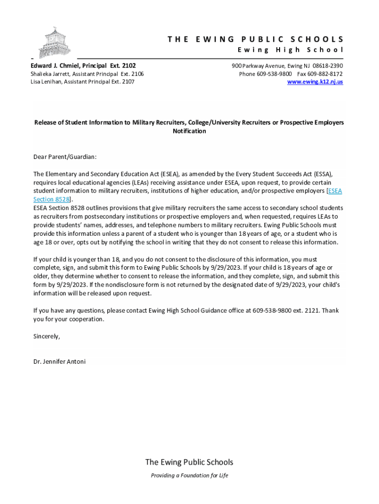 Submit the completed form to the Ewing High School office or admissions department.