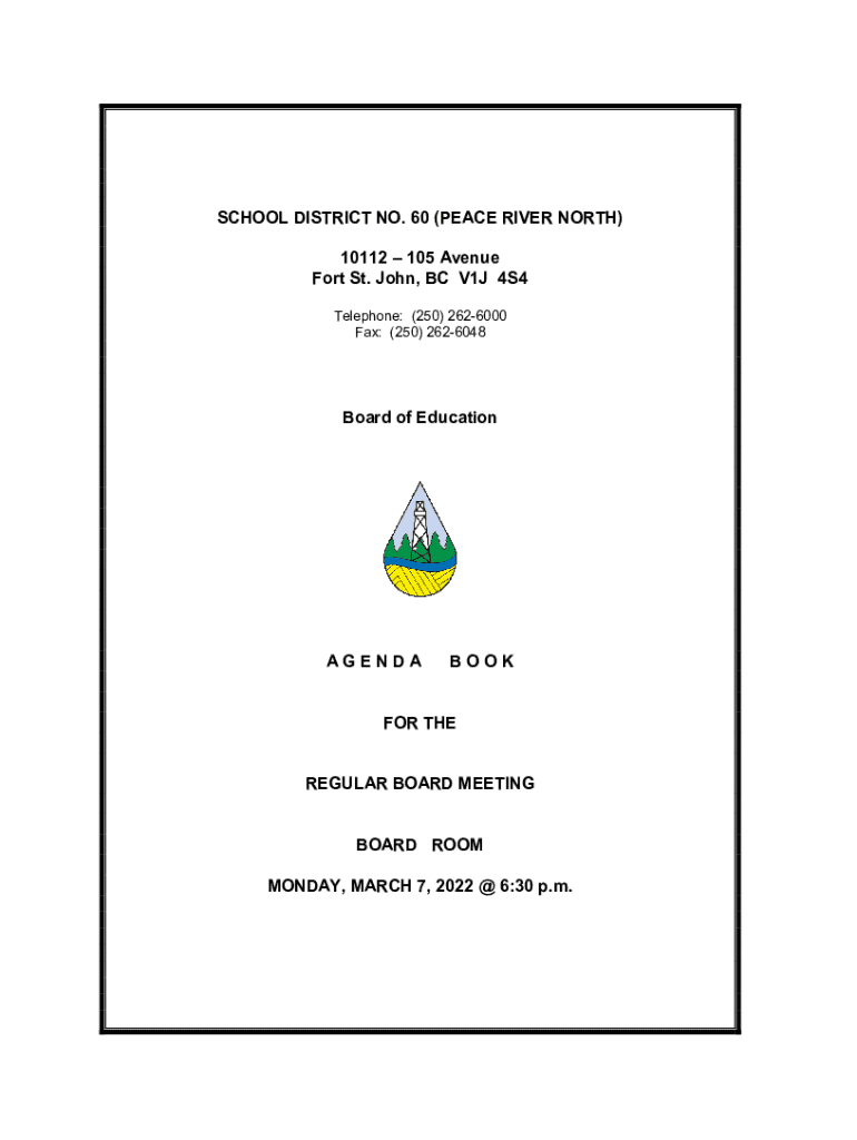 Fax: (250) 2626048Board of EducationAGENDABOOKFOR THE