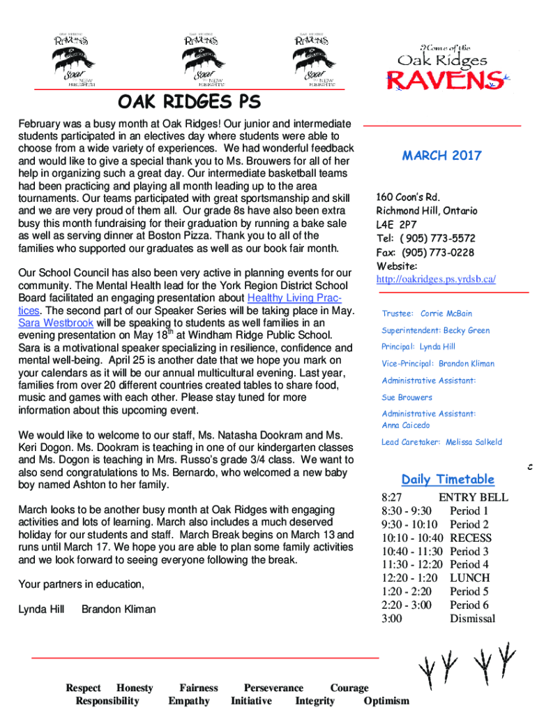 OAK RIDGES PS February was a busy month at Oak Ridges! Our junior and intermediate students participated in an electives' day when students were able to choose from a wide variety of experiences.