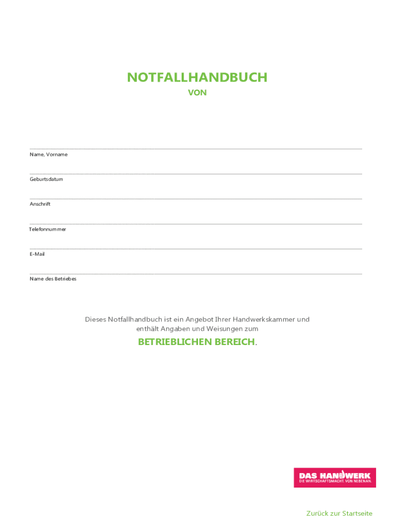 Füllen Sie ein Notfallkontaktformular aus, das Ihre Kontaktpersonen und wichtige medizinische Informationen enthält.
