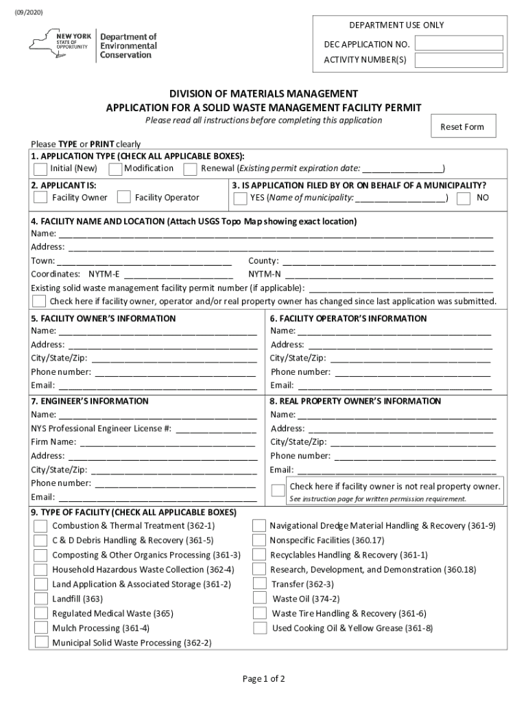 APPLICATION FOR A SOLID WASTE MANAGEMENT