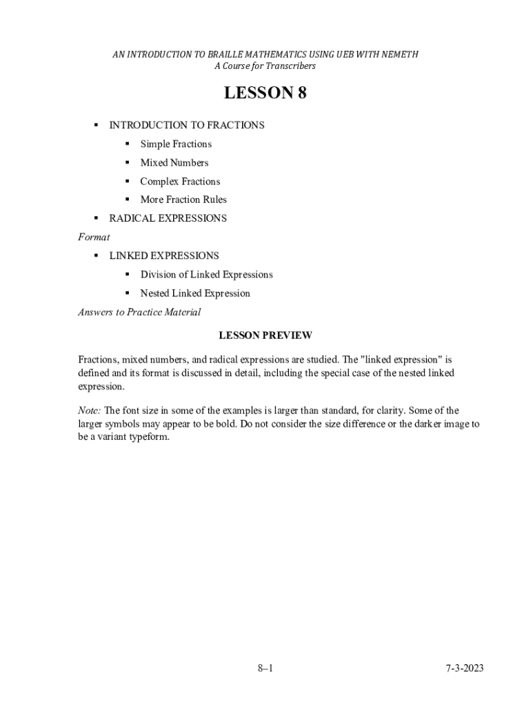 An introduction to nemeth is a formal document that provides an overview of the Nemeth Code, a braille system used for mathematics and scientific notation.