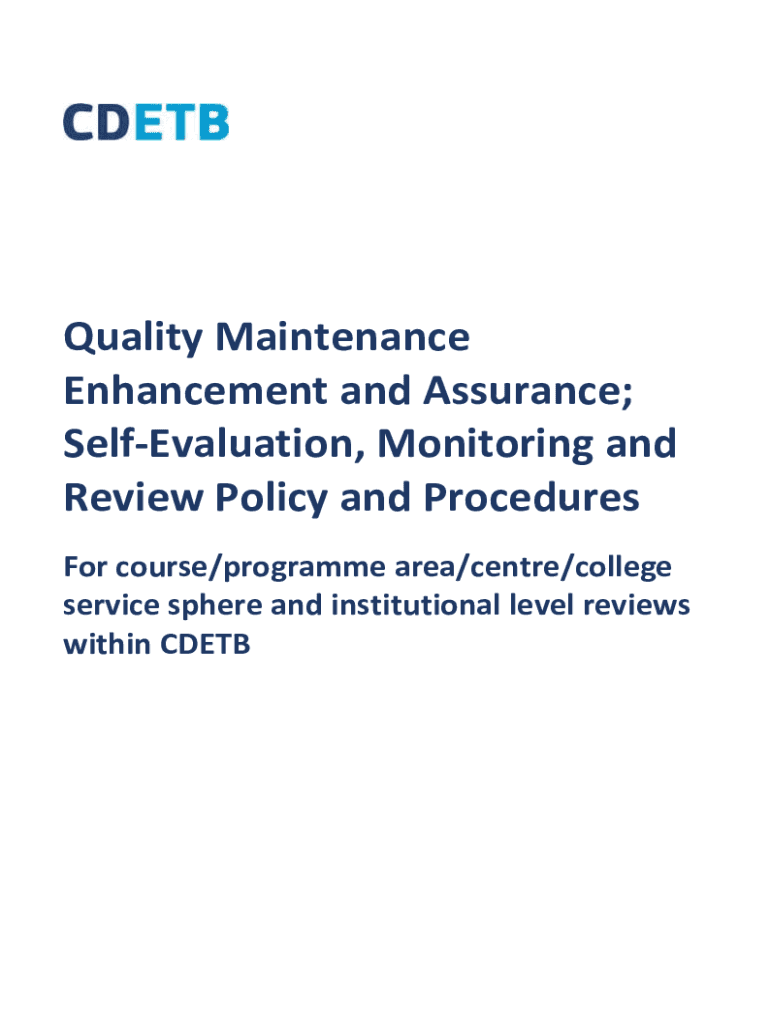 Quality Maintenance Enhancement and Assurance; Reevaluation, Monitoring and Review Policy and Procedures For course/program area/center/college service sphere and institutional level reviews within