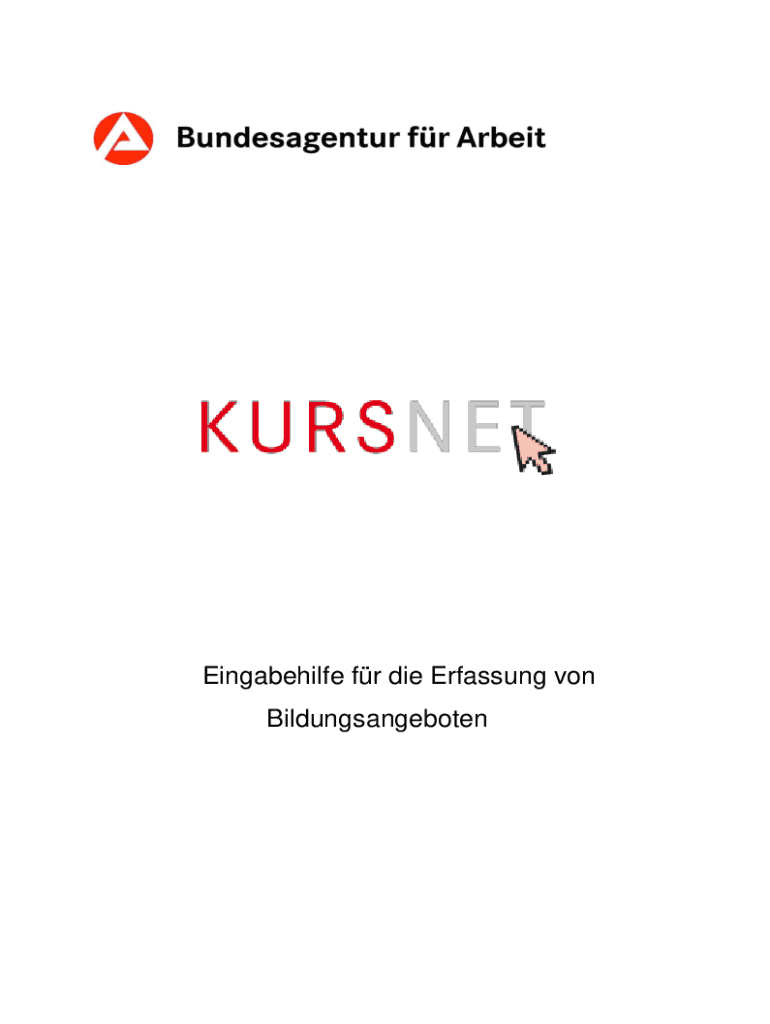 KURSNET@arbeitsagentur.deStand: 15.08.2023Eingabehilfe BildungsangeboteSeite 2 on 76Inhaltsverzeichnis