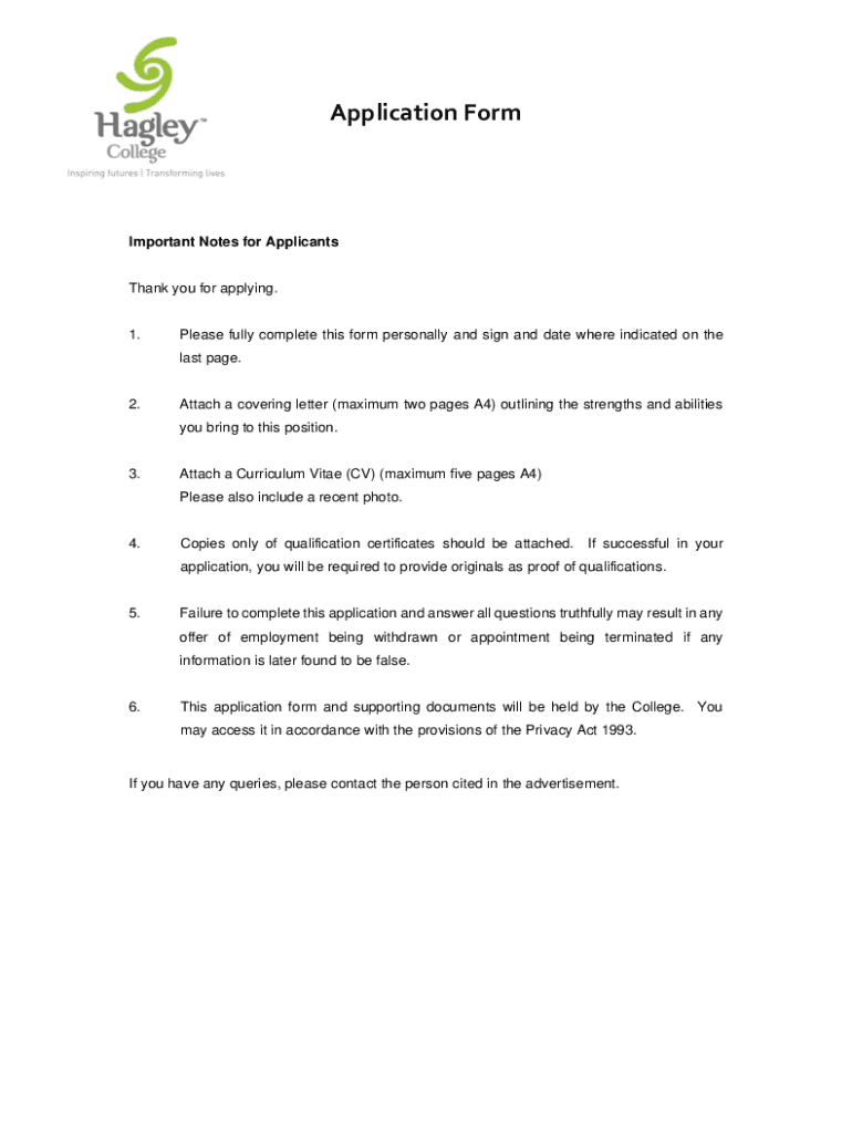 Application FormImportant Notes for ApplicantsThank you for applying.1. Please fully complete this form personally and sign and date where indicated on the last page.2. Attach a covering letter (maximum