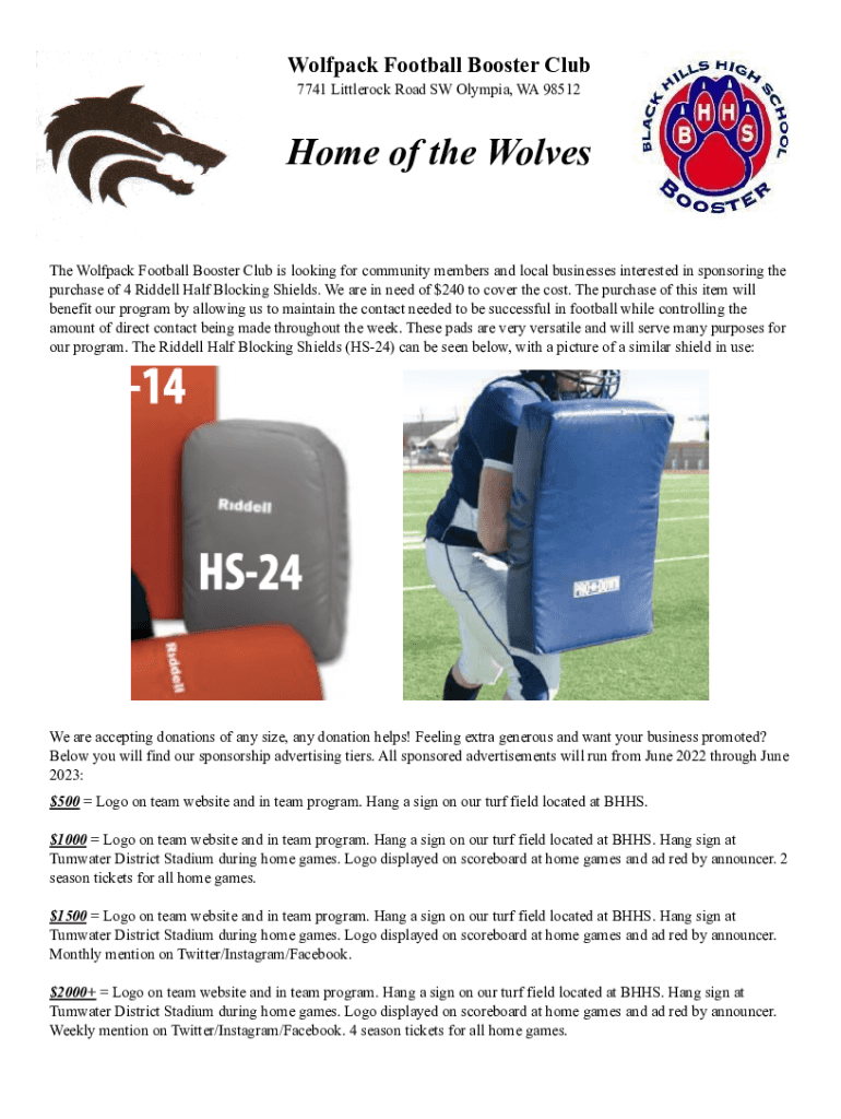 Wolfpack Football Booster Club 7741 Little rock Road SW Olympia, WA 98512Home of the Wolves The Wolfpack Football Booster Club is looking for community members and local businesses interested in sponsoring