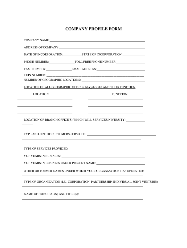 COMPANY PROFILE FORM COMPANY NAME: ADDRESS OF COMPANY: DATE OF INCORPORATION: PHONE NUMBER: FAX NUMBER:STATE OF INCORPORATION: TOLL FREE PHONE NUMBER: EMAIL ADDRESS:VEIN NUMBER: ___ NUMBER OF GEOGRAPHIC