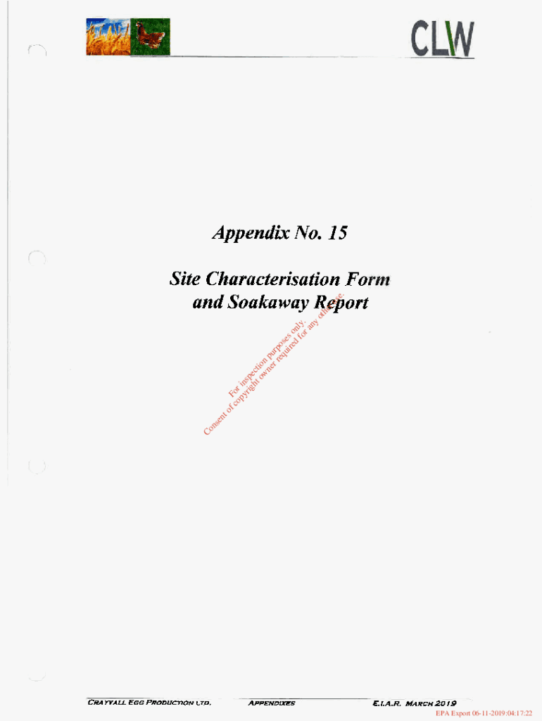 Appendix No. 15Cons into f c FO op r i yr NS IG PE ht ct ow ion né PU r RP EQ OS UI BS re o d NL for y. Ra nyotheruse. Site Characterization Form and Soak away Report WALL. PRODUCTION LTD.APPENDIXES.
