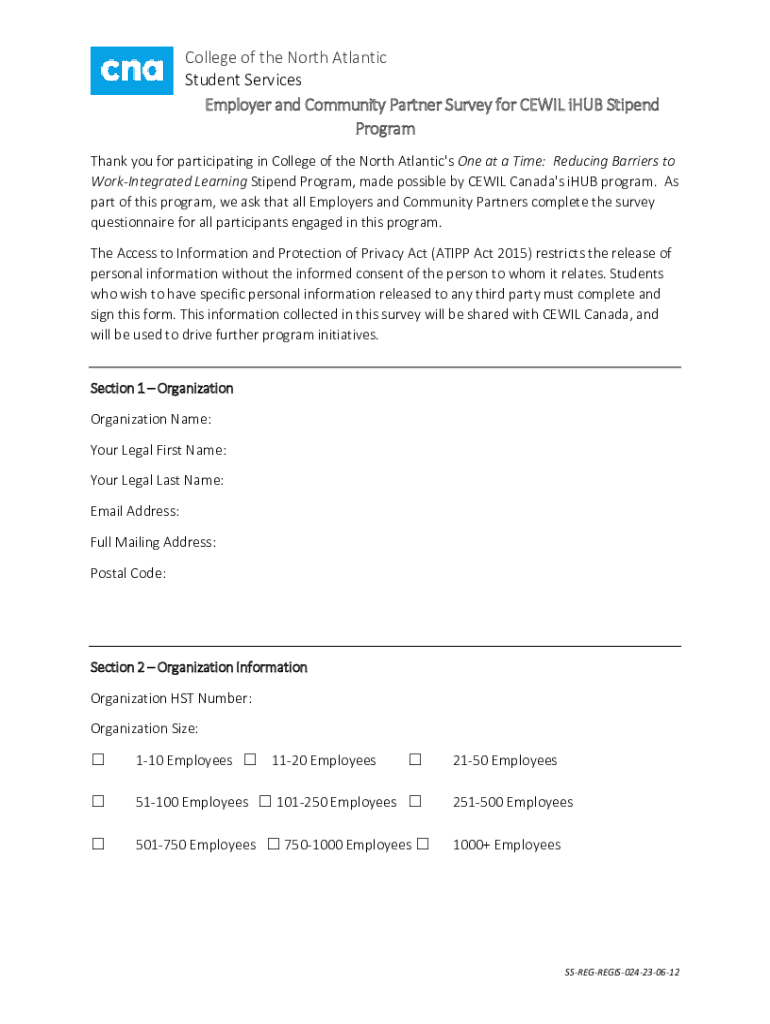 College of the North Atlantic Student Services Employer and Community Partner Survey for CECIL hub Stipend Program Thank you for participating in College of the North Atlantic\'s One at a Time: Reducing