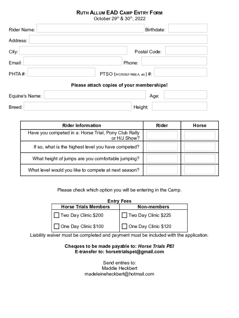 Edit your equestrian athlete development camp form online