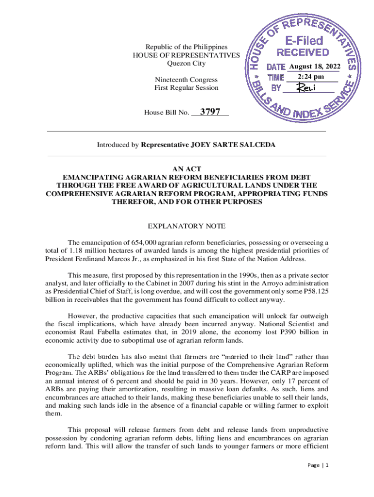 Get the free EMANCIPATING AGRARIAN REFORM BENEFICIARIES FROM DEBT