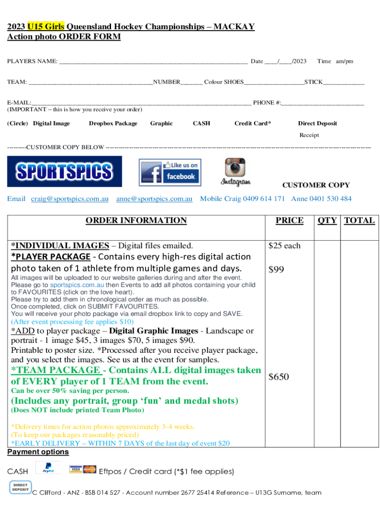 2023 U15 Girls Queensland Hockey Championships MACKAY Action photo ORDER FORM PLAYERS NAME: ___ Date ___/___/2023Time am/team: ___NUMBER___ Color SHOES___STICK___EMAIL:___ PHONE #:___ (IMPORTANT this