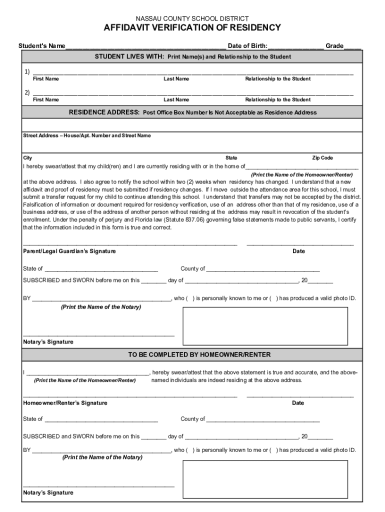 NASSAU COUNTY SCHOOL DISTRICTAFFIDAVIT VERIFICATION OF RESIDENCY