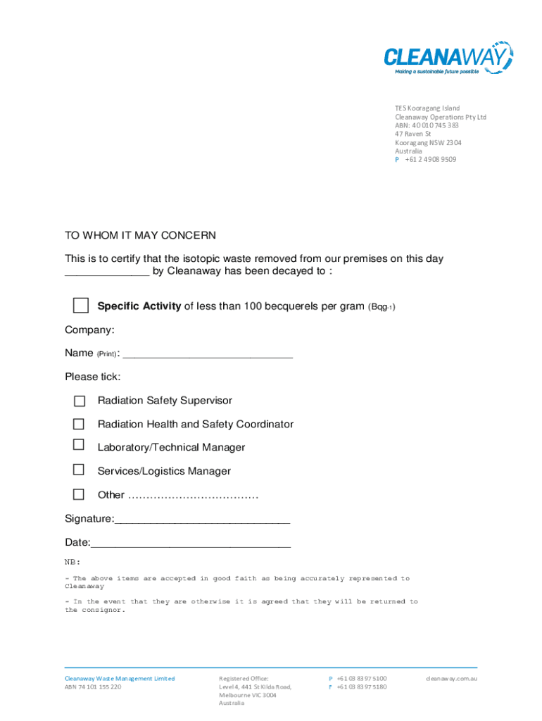 Cleanaway Kooragang Tts Liquid is not the form you're looking for?Search for another form here.