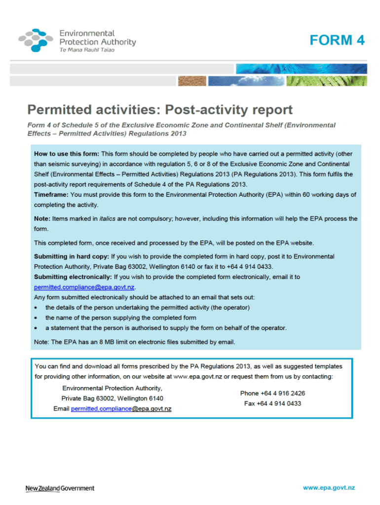 2Form 4 Permitted Activities: Postal city reportOperation name: Name used by operator to reference the activity described in this form: Sedimentation EffectsActivity code: Code given to you by the