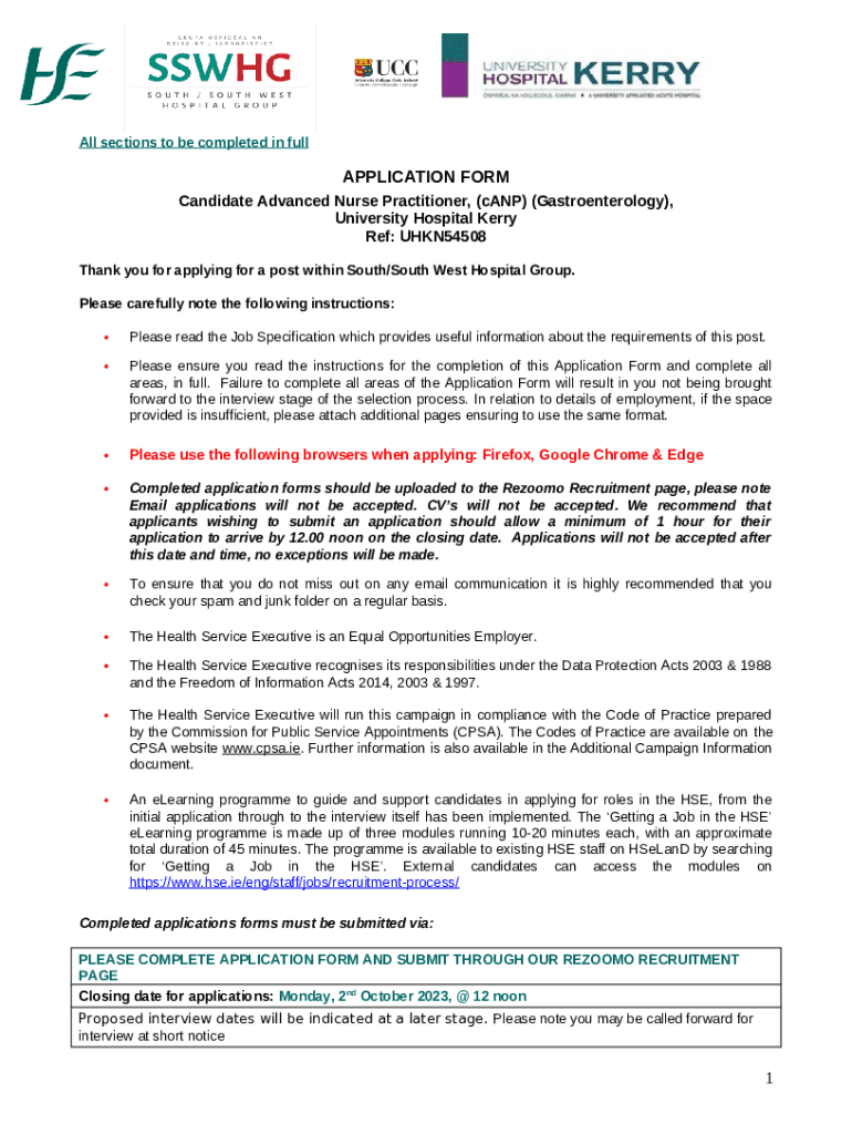 Instructions for the form Job Candidate Advanced Nurse Practitioner, (cANP) ...