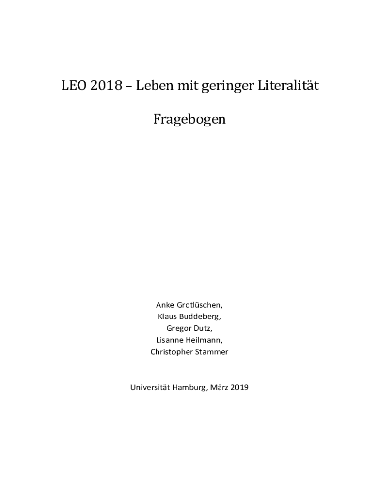 Christopher StammerUniversitt Hamburg, Mr 2019Fragebogen LEO 2018 Eben MIT ginger LiteralittLEO