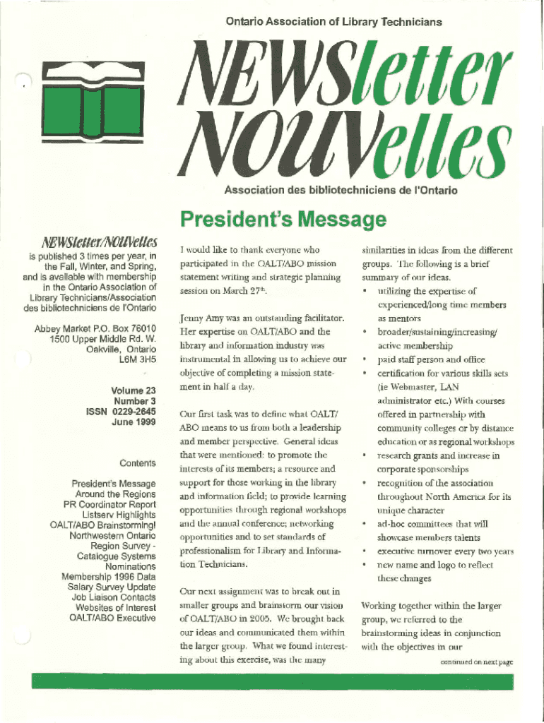 Ontario Association of Library TechniciansNEWSletter