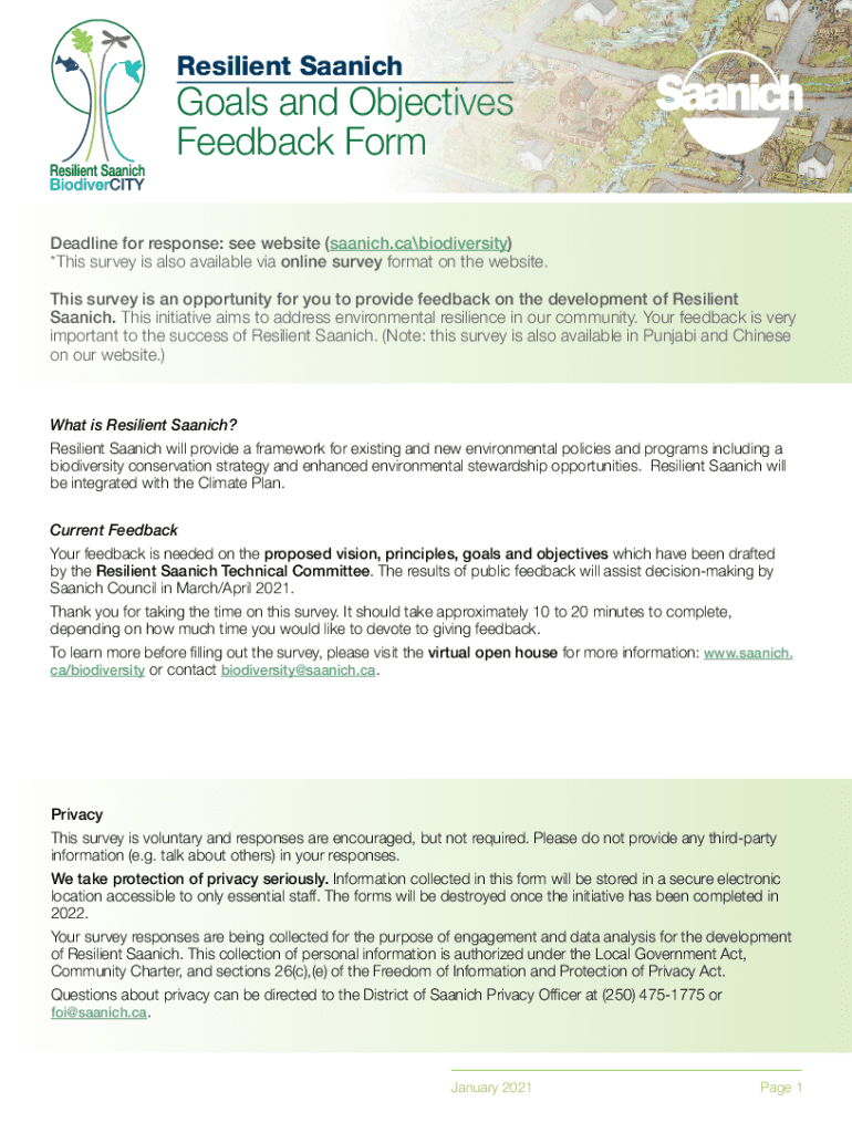 Get the free Resilient Saanich - Goals and Objectives Feedback Form