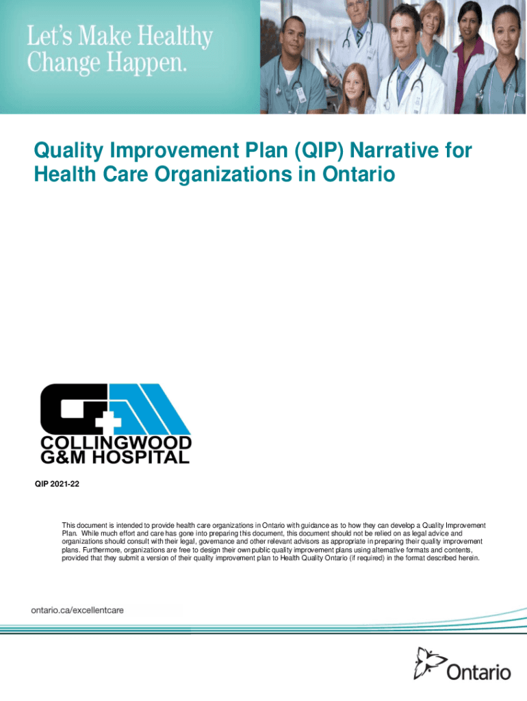 Quality Improvement Plan (HIP) Narrative for Health Care Organizations in Ontario 202122This document is intended to provide health care organizations in Ontario with guidance as to how they can develop