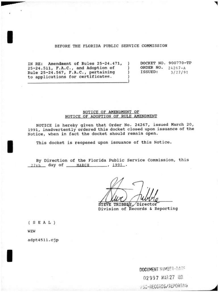 BEFORE THE FLORIDA PUBLIC SERVICE COMMISSIONING RE: Amendment OT Ru less 25 24 .4 71,